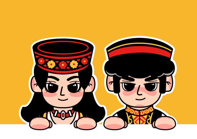 《塔吉塔丽》IP形象设计,以塔吉克族男孩、女孩为原型。塔吉克族来自美丽的帕米尔高原,被称为“冰山上的英雄”、“帕米尔高原的雄鹰”。该IP形象中男孩名为"塔吉",女孩名为“塔丽”,他们身着塔吉克族服饰,热情好客、能歌善舞,快来和他们一起跳舞吧!